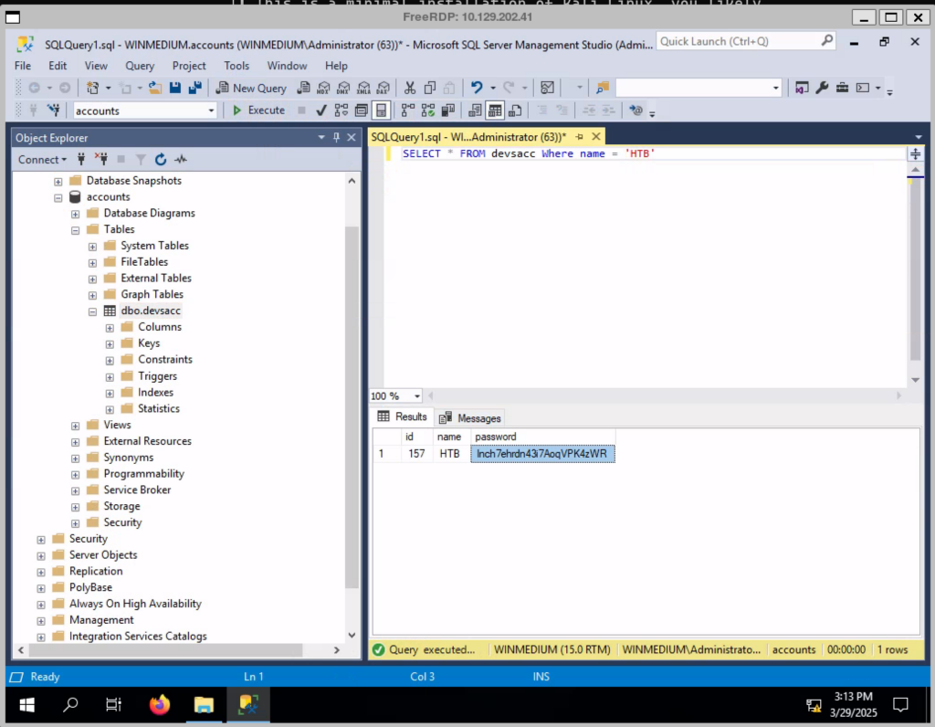 Using mysql we connect to the MySQL instance, access the database users, inspect its schema and retrive the password of the user HTB.